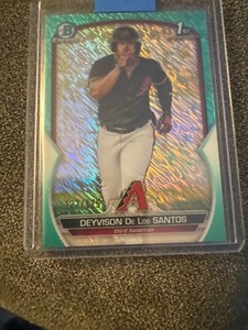 - 2023 Bowman Chrome Deyvison De Los Santos Bowman 1st Aqua Shimmer 121/125 DBacksOpens in a new window or tabPre-OwnedEUR 13.96atlantabraves55 (19) 100%0 bids · Time left9h 31m left (Today 05:07 PM)EUR 21.41Buy It Now+EUR 18.39 shippingfrom United States