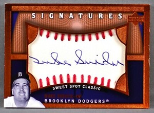 - 2005 Upper Deck UD Sweet Spot Classic Duke Snider MLB AUTO BROOKLYN DODGERS #SNOpens in a new window or tabPre-OwnedEUR 15.60fatherandsoncards3 (3,472) 100%9 bids · Time left1d 2h left (Sun, 05:15 PM)+EUR 16.07 shippingfrom United States