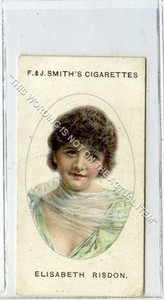 - Tobacco Card, F & J Smith, CINEMA STARS, 1920, Elisabeth Risdon, #17Opens in a new window or tabPre-OwnedEUR 6.88Top Rated SellerTop Rated Sellercards_to_collect (7,075) 99.8%+EUR 2.29 shippingfrom United Kingdom