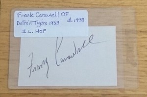 - Frank Carswell Signed Autograph 3x5 Index Card 1953 Detroit Tigers TOUGH D.'98Opens in a new window or tabEUR 37.36thepil (1,366) 100%+EUR 21.66 shippingfrom United States