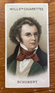 - 1912 W.D. & H.O. Will's FRANZ SCHUBERT Musical Celebrities #9 Tobacco CardOpens in a new window or tabEUR 4.74Top Rated SellerTop Rated Sellergamechanger_cards (86,042) 99.9%+EUR 13.29 shippingfrom United States