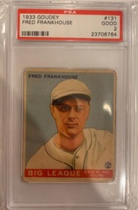 - 1933 Goudey Baseball #131 Fred Frankhouse VGOpens in a new window or tabEUR 37.36Top Rated SellerTop Rated Sellerbbcemporium (36,721) 100%+EUR 19.56 shippingfrom United States
