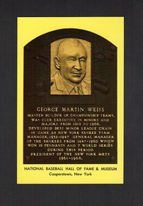 - George Weiss Yankees 3-1/2" x 5-1/2" Baseball Hall Of Fame Post CardOpens in a new window or tabPre-OwnedEUR 0.95Top Rated SellerTop Rated Sellerbono2003 (51,108) 99.8%+EUR 4.16 shippingfrom United States