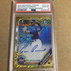 - 2019 Bowman Chrome Gold Shimmer Gregory Guerrero ROOKIE Auto 4/50 PSA 10Opens in a new window or tabPre-OwnedEUR 846.64bb_pregrading (4,799) 100%+EUR 43.97 shippingfrom United States