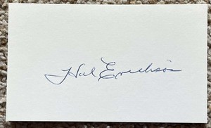 - Hal Erickson (d. 2008) signed autograph 3x5 index card Baseball Player H2599Opens in a new window or tabEUR 14.01Top Rated SellerTop Rated Selleramazingautographs (52,324) 100%+EUR 20.03 shippingfrom United States