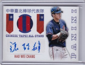 - Hao Wei Chang 2015 Panini USA Chinese Taipei All Stars Patch/Auto #2, 22/25Opens in a new window or tabPre-OwnedEUR 52.13cardsrus1 (7,248) 100%Was: Previous PriceEUR 69.50 25% offor Best Offer+EUR 19.39 shippingfrom United StatesSponsored