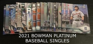 - 2021 BOWMAN PLATINUM ⚾ PICK YOUR CARD ⚾ baseball card rookie base single RC SPOpens in a new window or tabPre-OwnedEUR 1.22 to EUR 2.79smk-sportscards (12,021) 99.5%+EUR 14.53 shippingfrom United States