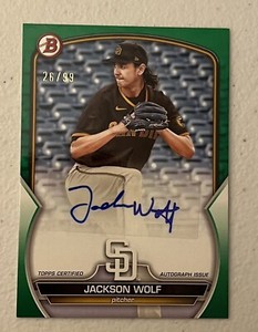 - Jackson Wolf San Diego Padres 2023 Bowman Rookie Prospect Paper AutoOpens in a new window or tabPre-OwnedEUR 3.71alzw99 (581) 99.8%+EUR 16.41 shippingfrom United States