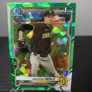 - Jackson Wolf 2021 Bowman Draft Chrome Green Sapphire /50 Refractor Sd Padres RCOpens in a new window or tabPre-OwnedEUR 93.06tynorm_41 (152) 99.3%+EUR 21.88 shippingfrom United StatesSponsored