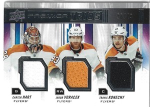 - 2019 20 PREMIER TRIOS - CARTER HART/JAKUB VORACEK/ TRAVIS KONECNY 20/49Opens in a new window or tabEUR 20.51Top Rated SellerTop Rated Selleredon6176 (3,785) 99.7%Shipping not specifiedfrom Canada
