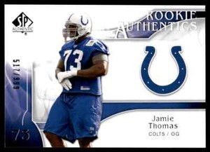 - 2009 SP Authentic JAMIE THOMAS Rookie 517/999 Indianapolis Colts #227 R69Opens in a new window or tabPre-OwnedEUR 2.53Top Rated SellerTop Rated Selleror Best Offersebas.meli (13,916) 99.9%+EUR 2.05 shippingfrom CanadaSponsored