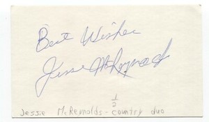 - Jesse McReynolds Signed 3x5 Index Card Autographed Signature Bluegrass MusicianOpens in a new window or tabEUR 42.7050% off 3+ with couponauthentictradingpost (6,725) 99.9%+EUR 18.06 shippingfrom United StatesSponsored