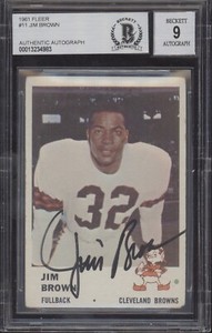 - JIM BROWN BGS AUTH 1961 FLEER FOOTBALL AUTHENTIC SIGNED AUTOGRAPH 9 AUTO BROWNSOpens in a new window or tabMC SPORTS CARDS IS ACTIVELY ACCEPTING CONSIGNMENTS!EUR 173.10Top Rated SellerTop Rated Seller20 bids · Time left2d left (Sun, 08:10 PM)mc_sportscards (69,525) 100%+EUR 35.60 shippingfrom United States