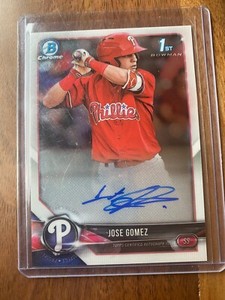 - 2018 Bowman Chrome Jose Gomez Prospect Rookie Autograph Philadelphia Phillies AOpens in a new window or tabPre-OwnedEUR 8.41katnewdays_3 (1,389) 100%+EUR 15.91 shippingfrom United States