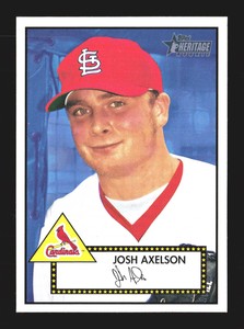- Josh Axelson autographed baseball card (Cardinals) 2001 Topps Heritage #225Opens in a new window or tabEUR 13.23autographwarehousecom (6,778) 99.8%+EUR 18.69 shippingfrom United States