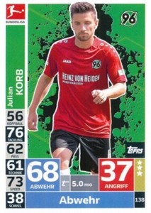 - Match Attax 2017/18 Bundesliga - #134 Julian Korb - Hannover 96Opens in a new window or tabEUR 1.00Top Rated SellerTop Rated SellerBuy It Nowmrbrave1 (96,732) 99.6%+EUR 6.50 shippingfrom Germany