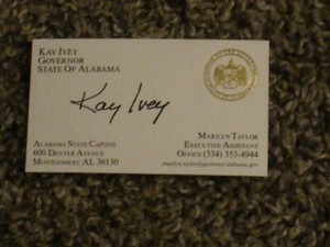 - Alabama Governor KAY IVEY Signed Business Card AUTOGRAPHOpens in a new window or tabEUR 32.73Top Rated SellerTop Rated SellerWas: Previous PriceEUR 47.44 31% offcram3131 (21,311) 99.9%+EUR 1.42 shippingfrom United States