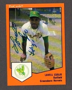 - Lavell Cudjo 1989 ProCards Greensboro Hornets #406 Cincinnati RedsOpens in a new window or tabPre-OwnedEUR 1.81cartescards (8,851) 100%+EUR 15.65 shippingfrom United StatesSponsored