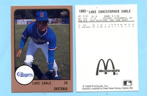 - 1988 ProCards Minor League Luke Sable #1002Opens in a new window or tabFulfilled by COMC - World’s largest consignment serviceEUR 2.97Top Rated SellerTop Rated Sellercomc_consignment (770,335) 99.8%+EUR 19.44 shippingfrom United States