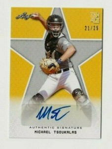 - 2020 Leaf Perfect Game National Baseball MICHAEL TSOUKALAS Yellow Autograph #/25Opens in a new window or tabPre-OwnedEUR 9.41Top Rated SellerTop Rated Sellerphilobut (10,181) 100%+EUR 6.62 shippingfrom CanadaFree returns