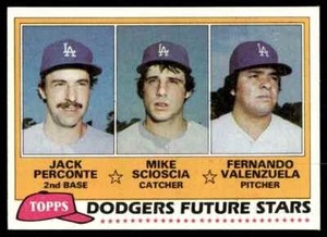 - New Listing1981 Topps Jack Perconte/Mike Scioscia/Fernando Valenzuela Rookie Dodgers #302Opens in a new window or tabPre-OwnedEUR 0.93Top Rated SellerTop Rated Seller0 bids · Time left6d 11h left (Thu, 01:03 PM)4eversportscards (21,302) 100%+EUR 20.10 shippingfrom United States