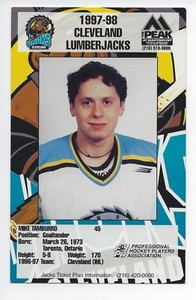 - 1997-98 Cleveland Lumberjacks (IHL) Mike Tamburro (goalie) postcardOpens in a new window or tabEUR 1.85Top Rated SellerTop Rated SellerBuy It Nowscotso53 (35,346) 99.8%+EUR 4.17 shippingfrom United States