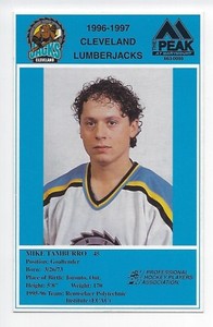 - 1996-97 Cleveland Lumberjacks (IHL) Mike Tamburro (goalie) postcardOpens in a new window or tabEUR 1.85Top Rated SellerTop Rated SellerBuy It Nowscotso53 (35,346) 99.8%+EUR 4.17 shippingfrom United States