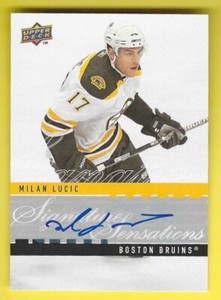 - 2008-09 Upper Deck UD Signature Sensations Milan LucicOpens in a new window or tabPre-OwnedEUR 18.84dickg13 (9,883) 100%0 bids · Time left2d 6h left (Sun, 08:42 AM)+EUR 20.82 shippingfrom United States