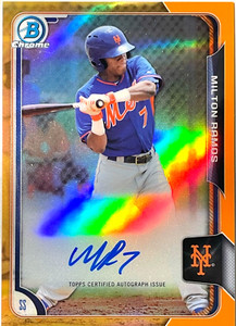 - New York Mets Milton Ramos 2015 Bowman Chrome Auto CardOpens in a new window or tabEUR 9.44signature_authentics (13,421) 100%+EUR 3.78 shippingfrom United States