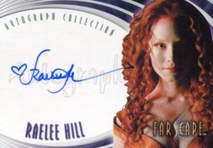 - Farscape Season 4 Autograph Card Auto A22 Raelee HillOpens in a new window or tabPre-OwnedEUR 94.89therealmrmisc (1,559) 99.5%+EUR 22.42 shippingfrom United States