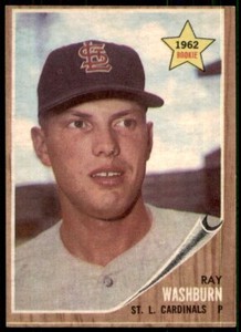 - New Listing1962 Topps #19 RAY WASHBURN Rookie RC St. Louis Cardinals NICE CARD !!!Opens in a new window or tabPre-OwnedEUR 1.20sportscards7542 (1,103) 100%+EUR 15.45 shippingfrom United States