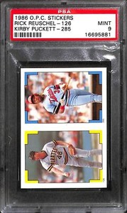 - 1986 O.P.C. STICKERS RICK REUSCHEL #126 KIRBY PUCKETT-285 PSA 9 16695881Opens in a new window or tabNew (Other)EUR 23.30Top Rated SellerTop Rated Seller0 bids · Time left2d 5h left (Sat, 06:10 PM)sports-cards-forever (20,369) 99.9%+EUR 21.76 shippingfrom United States