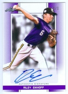 - RILEY EIKHOFF "AUTOGRAPH CARD #1/1" LEAF PERFECT GAME NATIONAL SHOWCASE 2019Opens in a new window or tabEUR 18.96Top Rated SellerTop Rated Sellersocal-sportscards (16,405) 100%+EUR 19.36 shippingfrom United States