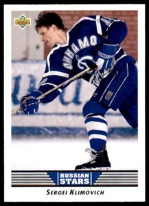 - 1992-93 UPPER DECK SERGEI KLIMOVICH DYNAMO MOSCOW #339Opens in a new window or tabPre-OwnedEUR 1.66Top Rated SellerTop Rated Sellersportcardmktplace (9,389) 99.9%+EUR 14.69 shippingfrom United StatesSponsored