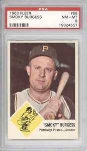 - SMOKY BURGESS PSA 8 1963 FLEER BASEBALL #55 PIRATES [SET BREAK] 4557Opens in a new window or tabMC SPORTS CARDS IS ACTIVELY ACCEPTING CONSIGNMENTS!New (Other)EUR 2.09Top Rated SellerTop Rated Seller3 bids · Time left17h 26m left (Today 08:50 PM)mc_sportscards (70,404) 100%+EUR 20.67 shippingfrom United States