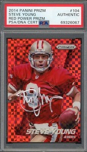 - Steve Young 2014 Panini Red Power Prizm Signed Football Card #104 Auto PSAOpens in a new window or tabPre-OwnedEUR 188.11Top Rated SellerTop Rated Sellerbepowers33 (11,129) 100%+EUR 29.49 shippingfrom United StatesSponsored