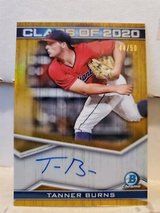 - New ListingTanner Burns 2020 Bowman Chrome Draft Gold Refractor Auto /50 Class Of 2020Opens in a new window or tabPre-OwnedEUR 6.61Top Rated SellerTop Rated Sellerbaseball12114 (7,817) 99.9%+EUR 15.98 shippingfrom United States