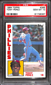 - New Listing1984 TOPPS #385 TONY PEREZ PSA 10 81738387Opens in a new window or tabEUR 20.70Top Rated SellerTop Rated Seller0 bids · Time left4d 4h left (Wed, 06:33 PM)sports-cards-forever (20,115) 99.9%+EUR 21.75 shippingfrom United States