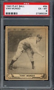- New Listing1940 Play Ball Baseball #64 Van Mungo PSA 6Opens in a new window or tabNew (Other)EUR 60.50Top Rated SellerTop Rated Sellerbbcemporium (36,689) 100%+EUR 20.41 shippingfrom United States