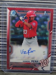 - 2021 Bowman Chrome Viandel Pena Auto #CPA-VP 1st RC NationalsOpens in a new window or tabPre-OwnedEUR 5.66Top Rated SellerTop Rated Sellerbiolsi7 (10,425) 99.7%+EUR 14.73 shippingfrom United States