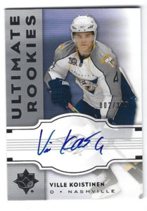 - 07-08 UD Upper Deck Ultimate Rookies Ville Koistinen /399 Rookie AutoOpens in a new window or tabPre-OwnedEUR 6.63Top Rated SellerTop Rated Sellergreg1465 (18,622) 100%+EUR 19.56 shippingfrom United States