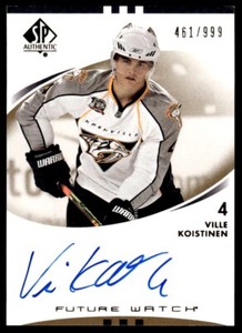 - 2007-08 SP Authentic Future Watch Auto 226 Ville Koistinen /999 PredatorsOpens in a new window or tabEUR 6.15Top Rated SellerTop Rated Selleronehill99 (3,856) 99.8%+EUR 4.79 shippingfrom Canada