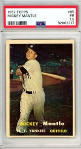 - 1957 Topps MICKEY MANTLE #95 PSA Graded 1.5 FR-Cond "NO RESERVE INVEST"Opens in a new window or tabNew (Other)EUR 234.88handsomef (3,843) 100%27 bids · Time left1d 20h left (Sat, 04:34 PM)+EUR 27.81 shippingfrom United States