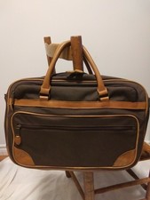 Vintage Brown LL Bean Canvas & Leather Briefcase Attache Laptop Bag FF