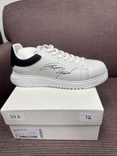 - NEW LOW PRICEEmporio Armani Bovine Men’s Size 11M White Leather Casual Fashion SneakersPre-Owned · Size US M 12$79.20$88.00Buy It Now+$12.00 deliveryLocated in United StatesFree returns