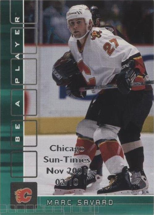 2001-02 In the Game Be A Player Memorabilia - Marc Savard #90 Emerald Chicago Sun-Times Nov 2001 /10