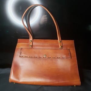 Vintage John Romain Cognac Leather Shoulder Bag Hand Stitched Logo Pockets Zip