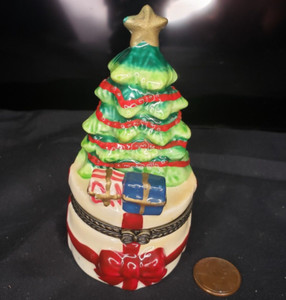 Vintage Christmas Tree With Presents Small Hinged Trinket Box with Wreath inside