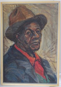 Vintage African American , BLACK MAN Suit & Brown Hat, Expressionist Painting