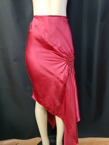 VICTORIO & LUCCHINO Designer Asymetric Hem Red Silk Sz 40 (S) Womens skirt #CB5